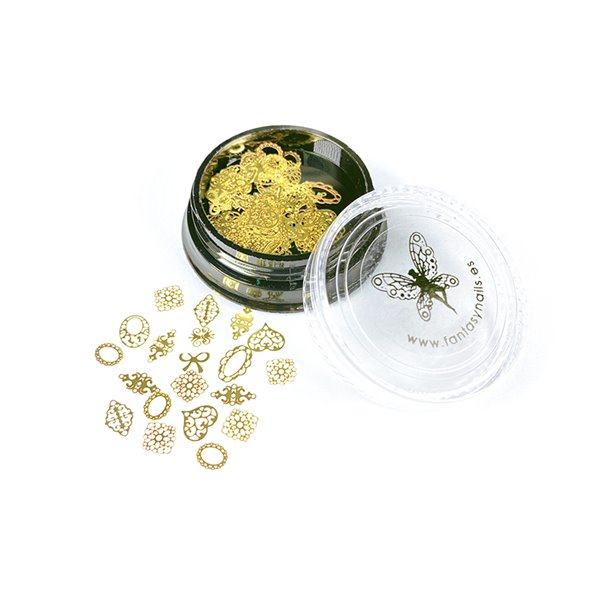 Flat Metal Gold VINTAGE : décorations métalliques plates couleur or au style vintage chic. Parfaites pour sublimer les poses nail art avec élégance, finesse et caractère. Idéal pour des créations professionnelles raffinées et intemporelles.