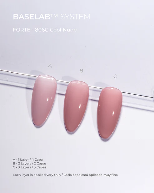 BaseLab™ Forte – Cool Nude – Base nude froide, auto-nivelante et semi-transparente, pour un renfort discret et moderne. Vegan & cruelty-free, sans TPO ni HEMA.