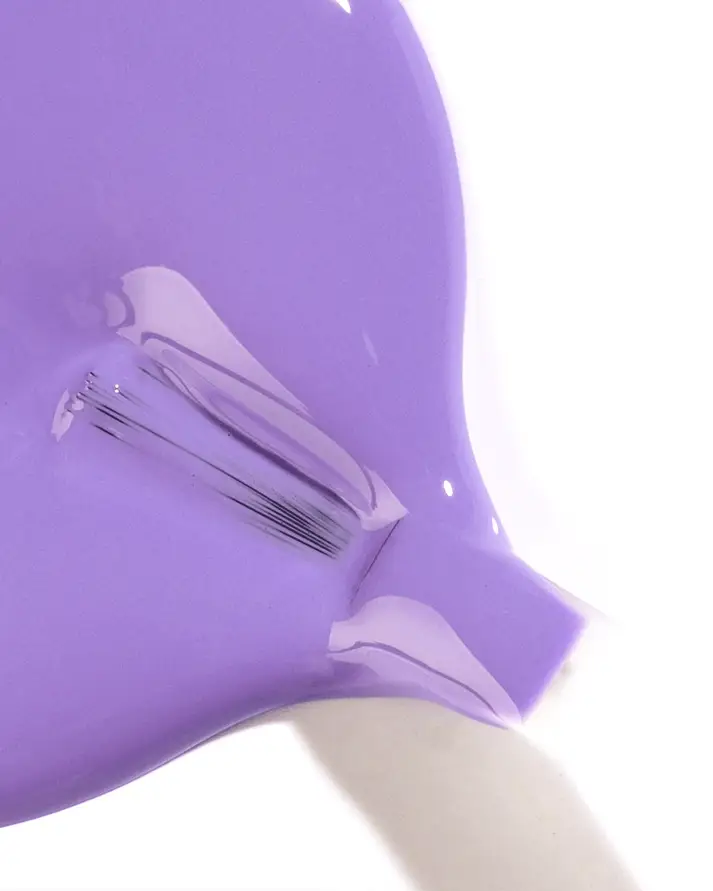 Dès l’ouverture du flacon 10 ml, la couleur révèle une pigmentation maîtrisée et homogène. Sur les images, on observe un violet clair, froid, subtilement bleuté, avec une translucidité parfaitement dosée. Cette caractéristique permet de travailler la teinte aussi bien en effet voile sophistiqué qu’en couvrance plus affirmée, selon le nombre de couches appliquées.