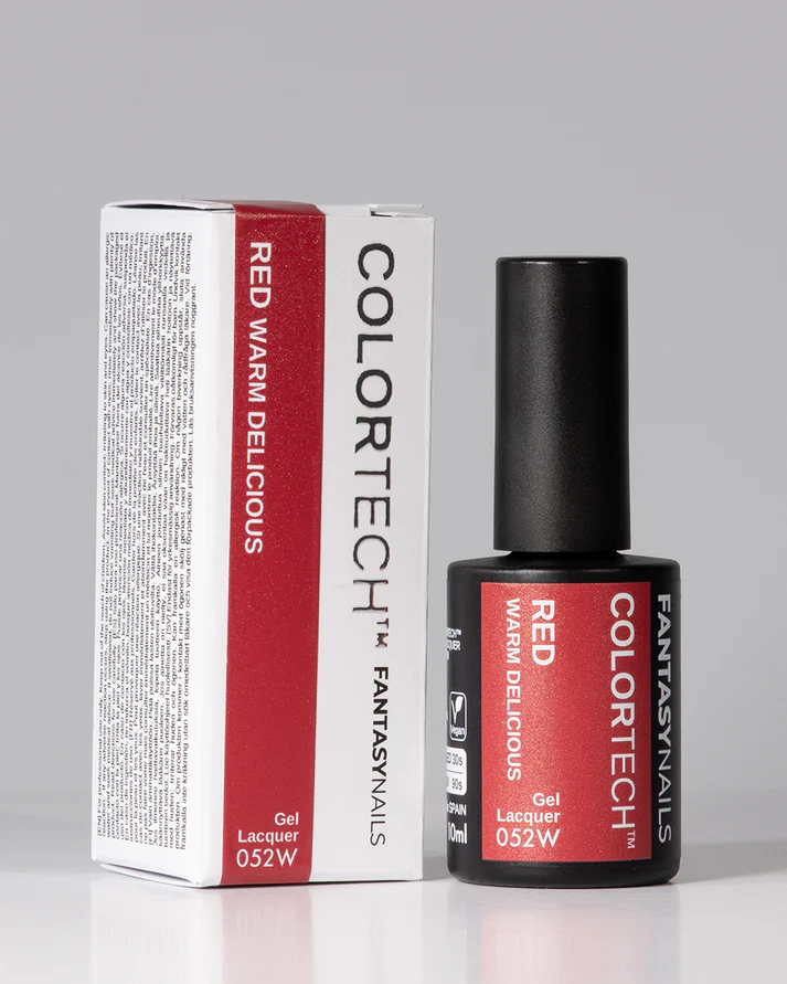 Gel Lacquer Colortech – Red Warm Delicious – Rouge chaud et séduisant, couvrance parfaite et brillance miroir, vegan & cruelty-free, sans TPO ni HEMA.