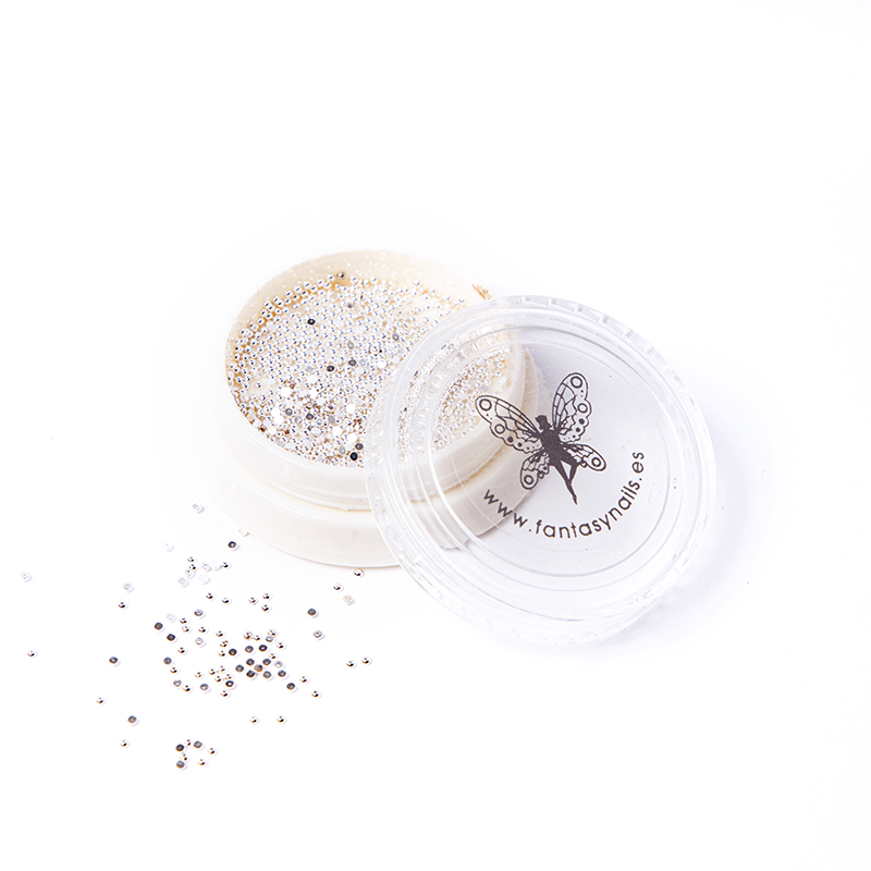 Grâce à leur format miniature et à leur forme régulière, les Metallic Studs Silver sont faciles à manipuler. Ils se positionnent avec précision à l’aide d’un outil de dotting, d’un pinceau silicone ou d’un embout cire.