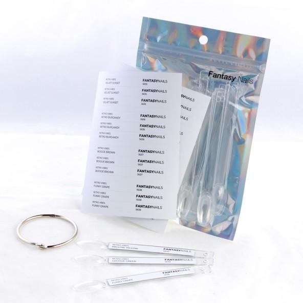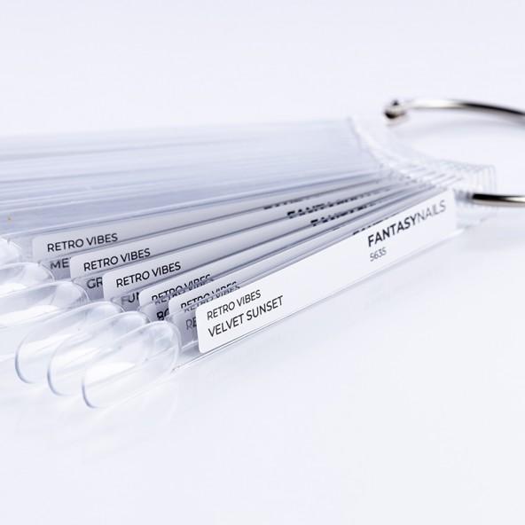 Conçu pour accompagner la collection emblĂ©matique de gels semi-permanents RETRO VIBES, ce nuancier vous permet de crĂ©er votre propre livre dâĂ©chantillons, Ă la fois Ă©lĂ©gant, pratique et fidĂšle Ă lâesprit Fantasy Nails.