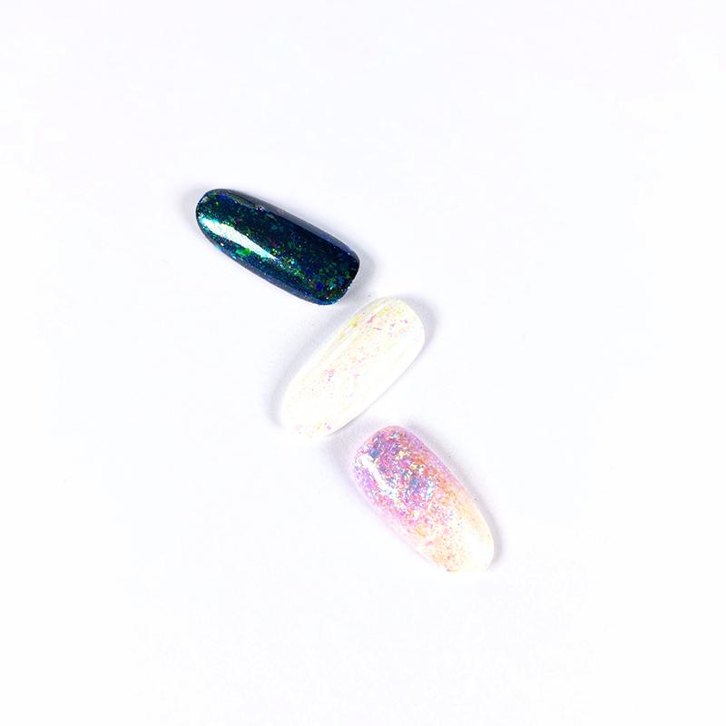 Contrairement aux paillettes classiques, les Mermaid Flakes ne sont pas granuleux. Leur structure en fines lamelles permet un rendu visuel riche sans surépaisseur. Une fois encapsulés ou scellés sous un gel ou un top, ils offrent une surface parfaitement lisse, idéale pour les clientes qui aiment les effets sophistiqués mais confortables au quotidien. 💅
