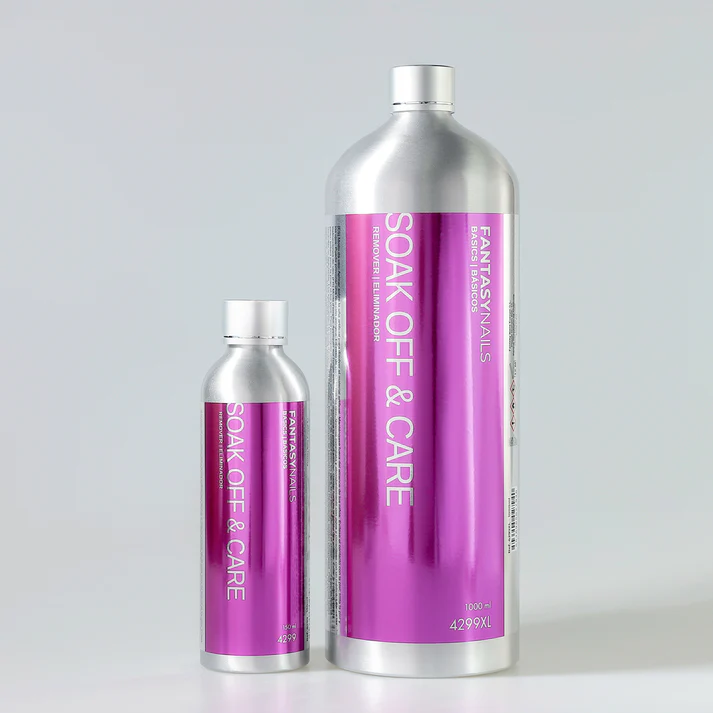 Le Soak Off & Care Liquid de Fantasy Nails révolutionne l’étape de retrait du gel et de l’acrylique : ce n’est plus simplement un dissolvant, mais une solution complète qui respecte et protège l’ongle naturel. Grâce à sa formule récemment améliorée, c’est un soin douceur enrichi en vitamines et en agents hydratants pour un retrait professionnel et ultra-respectueux. (Fantasy Nails)